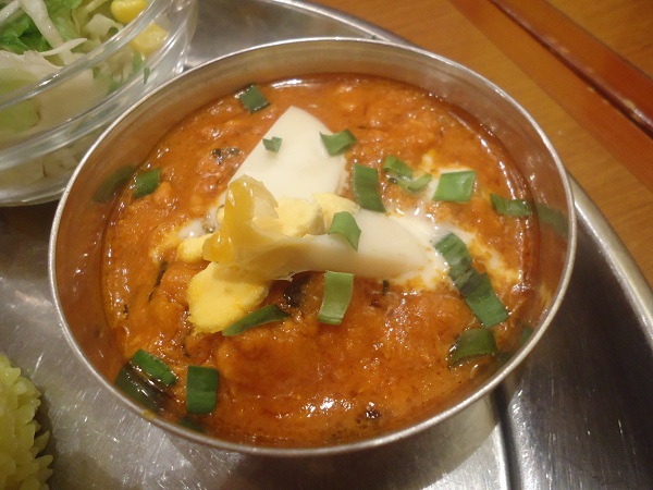 左はキーマエッグカレー、辛さは普通、うん、美味いけどもうちょっと辛くてもよかったな。