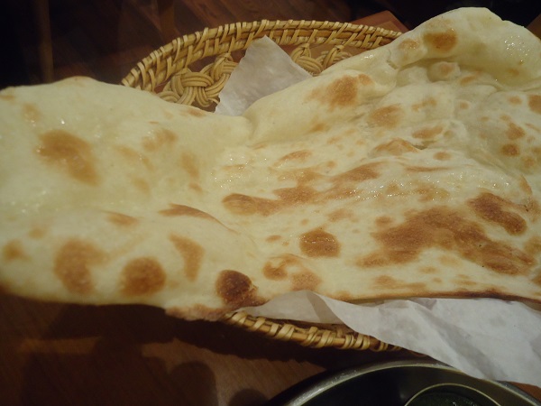 ナン、でけぇ、焼きたてで熱々、美味い、来た時でかくてビビッた、食えるのか?って、でもぺろっと食えたんだけど。