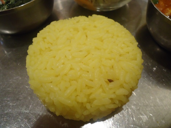 ライス、固めな炊き加減なサフランライス、先にプレートが来て(あとからナン)ライス少なっって思ったけど、ナンの大きさ考えたらコレで十分っす。