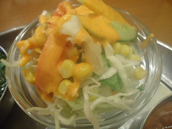 Aセット カレー2種類、ナン、ライス、サラダ、タンドリーチキン、ソフトドリンク \1280