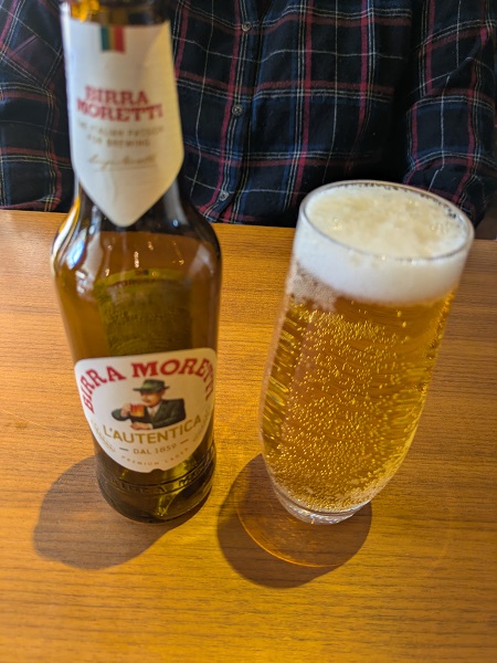 リネンさんはモレッティというイタリアのクラフトビール、ちょっとクセあるみたい。