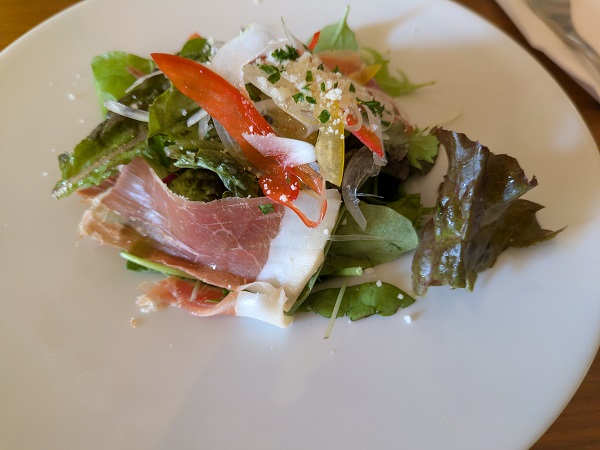 Aセットの生ハムサラダ、やはりココのサラダ相当美味いな、生ハムのしょっぱさも相当いい。