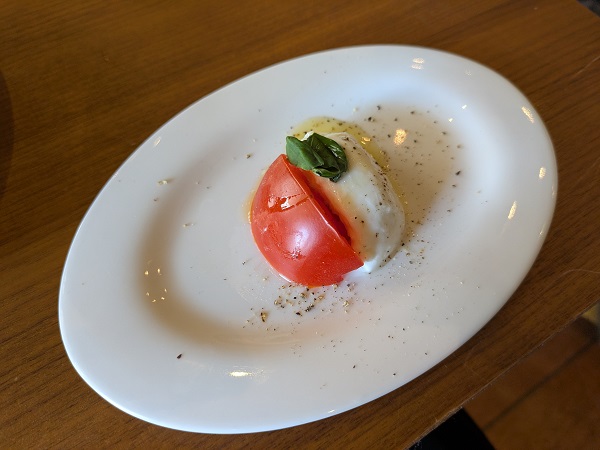 つづいてミニカプレーゼ、トマトとモッツァレラチーズ、バジルとオリーブオイル、まあ美味くないわけないよ。