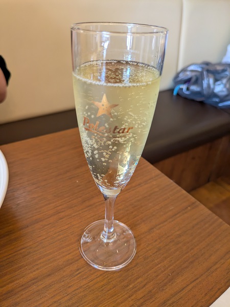まず食前酒のポールスター、スパークリングワイン、香りよくて飲みやすくて美味いみたいね、オレは香りだけ。