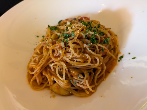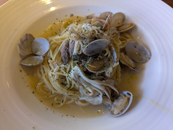 パスタは細めでしっかりアルデンテ、ニンニク風味は気持ちだけなのでよかったかな。