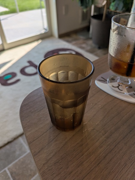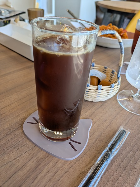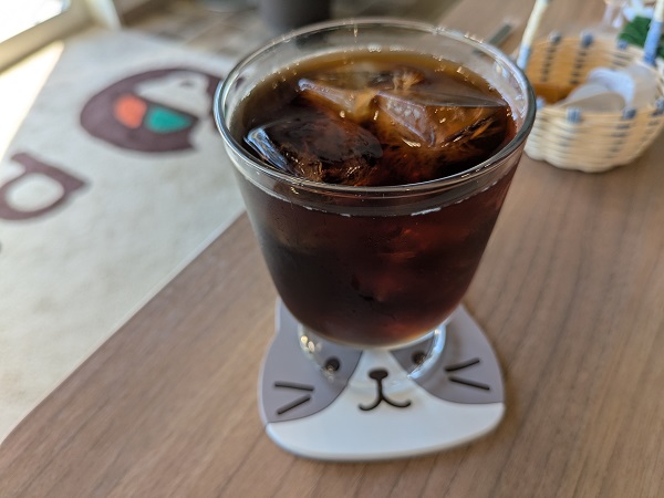 オレはアイスティーを、さっぱり美味い、ネコちゃんコースターかわいい。