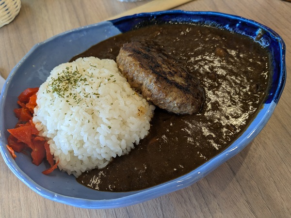 ハンバーグカレー、やはり甘いカレーなのかな?と思ってたんだけど、はじめ少し甘みくるんだけど、後味がかなりスパイシーでこれは美味いなと。