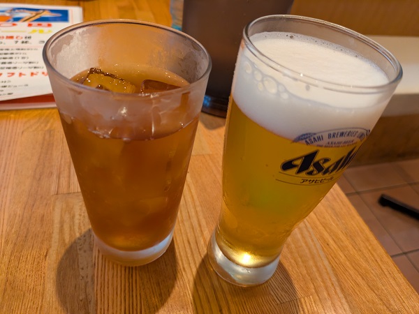 リネンさんは生ビール、アサヒだからスーパードライかな?お通し付きで一杯目は390円、二杯目以降は500円、水曜は何杯でも390円みたい、スゴいな…オレはウーロン茶で乾杯。