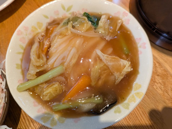 リネンさんはお好み麺丼ランチを中華丼ミニで、醤油ラーメン+サラダ+中華丼or天津飯or焼飯を選べて、麺と飯どちらかを並盛、片方をミニサイズにすることができます…なので麺を並盛りに。