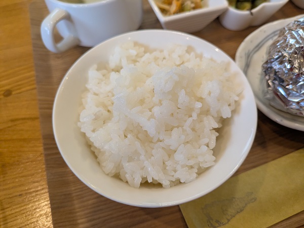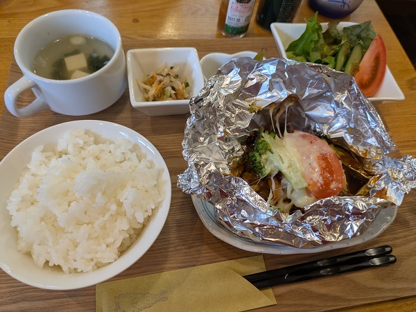 オレは包み焼きハンバーグ、サラダがもスープも相変わらず美味いね。