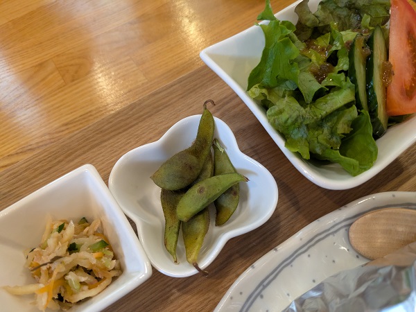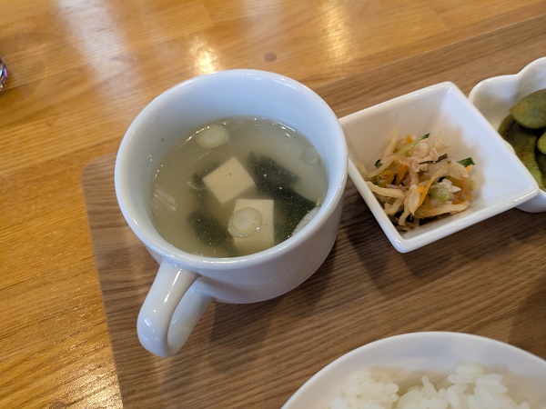 リネンさんは 豚肉と野菜のハニーマスタードソース、サラダとスープの他に小鉢が二点ついてきます、小松菜の和え物と卯の花かな、はじめ白和えかと思ったらボソッとしてたんで卯の花かなと思う。