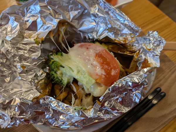ハンバーグはオーブンから出てきてすぐで熱々、なかなかホイルをあけられなかったよ。