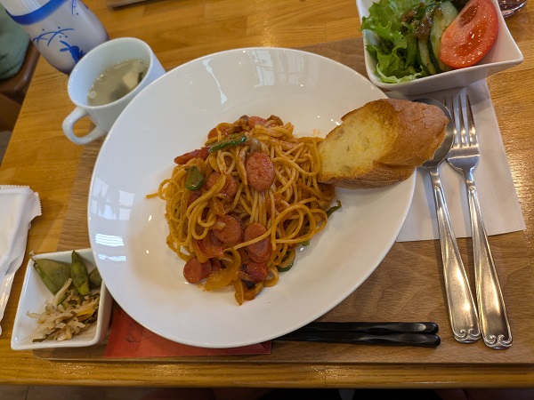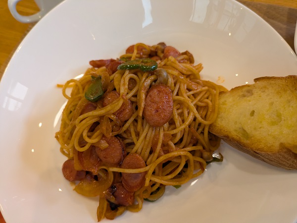 リネンさんはナポリタン、シンプルだけど優しい味のナポリタンで、コレも相当好きだわ、バゲットも美味いし。