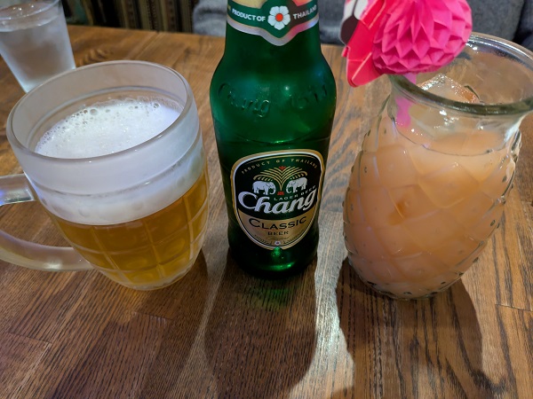 リネンさんはチャーンビール、オレはグァバジュース、甘いなぁ、HHとはハッピーアワーでドリンク半額です。