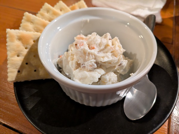 もう少しおつまみ欲しくてクリームチーズといぶりがっこのポテトサラダ、なめらかなポテサラにいぶりがっこの風味と歯応えのアクセントがかなりいい。