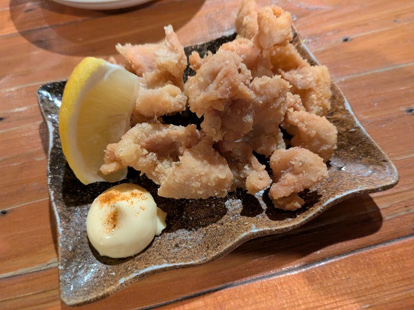 アプリ会員限定メニューで鶏皮唐揚げ、サククニュ感が素晴らしい、レモン合うし…ウチらが頼んだのが最後みたいで、あとでアプリ確認したらメニューからなくなってました、なので値段分からない…