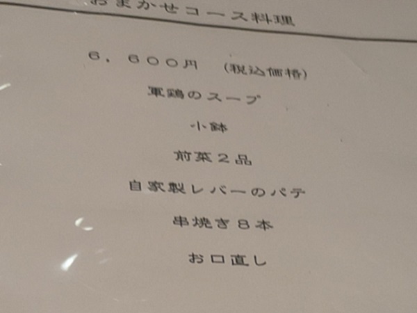 6600円コースx2 \6600x2、神亀 ひこ孫(お燗)一合 \880、烏龍茶 \880、シャトー ド ラ ヴェル "クレマン ド ブルゴーニュ ブリュッド ブラン" グラス \1100、ハイボールx2 \720x2、原木しいたけ(修善寺) \440、トマト \330、ボンボチ \440、軍鶏の雑炊 \1210
