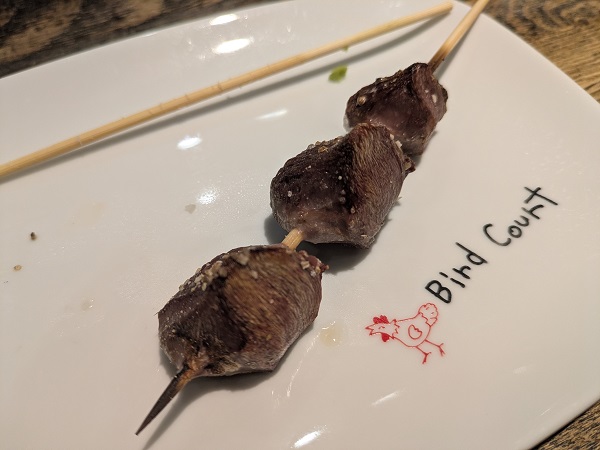 砂肝、サクッという歯応えが砂肝っぽいなと、しかし噛むたびに旨味があふれるのがホントにすごい。