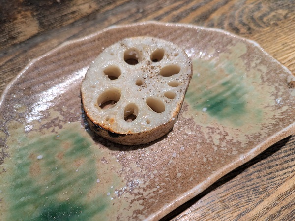 加賀蓮根、サクッと焼けてていいね、歯が入る瞬間たまらないなと。