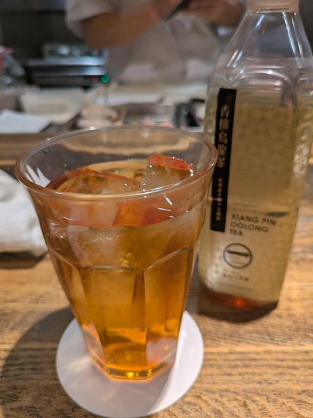 飲み物はオレは烏龍茶、ペットボトルできたよ、でも見たことない香檳(シャンピン)烏龍茶、台湾の高級烏龍茶ですって…確かに美味い、すげーな。