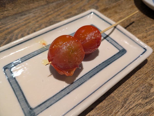 トマト、ジュワーっと汁があふれて熱々、甘さもいいな。