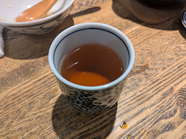 最後お茶を出してくれました、ほうじ茶だと思うんだけどなんとなく優しいお茶でした。