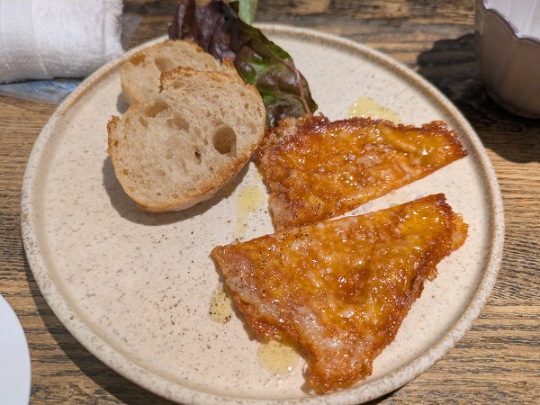 オレはレバー苦手なので焼チーズ(カチョカヴァロ)、カリッカリでバゲットともよく合うカリカリ+カリカリがかなりいい感じ。