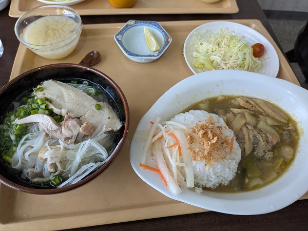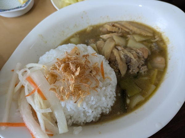 オレはグリーンカレーと鶏フォーのセット、鶏フォーはハーフサイズ、旨味十分な鶏スープで一口目から美味いし、ハーフだけどフォーは結構入ってて食べごたえ十分、鶏肉も柔らかい。