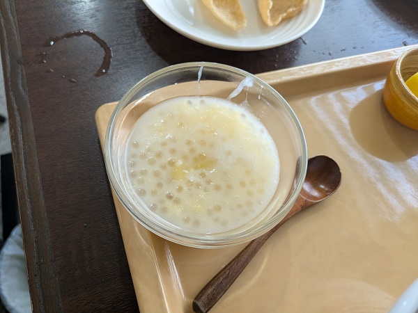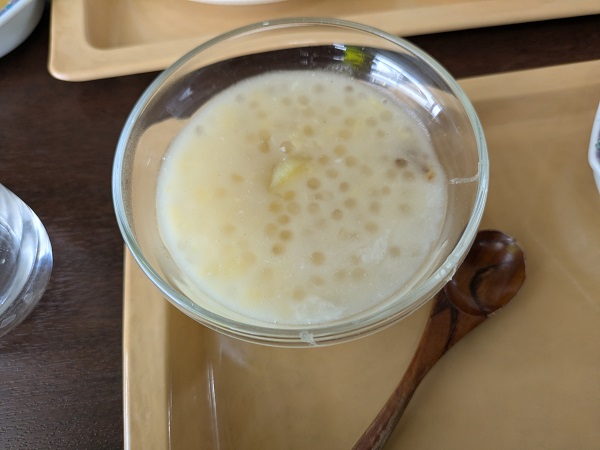 タピオカスイーツは昔ながらの白い小さめなタピオカで、多分ココナッツミルクベースの甘いドロッとしたベースにさつまいもも入っています、気持ち甘みが強いかも…チェーってヤツかも?