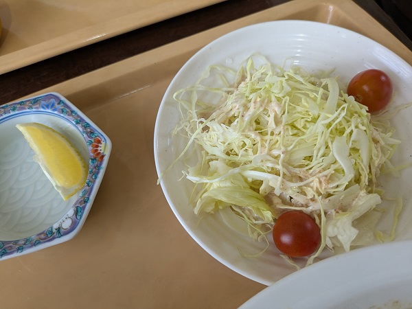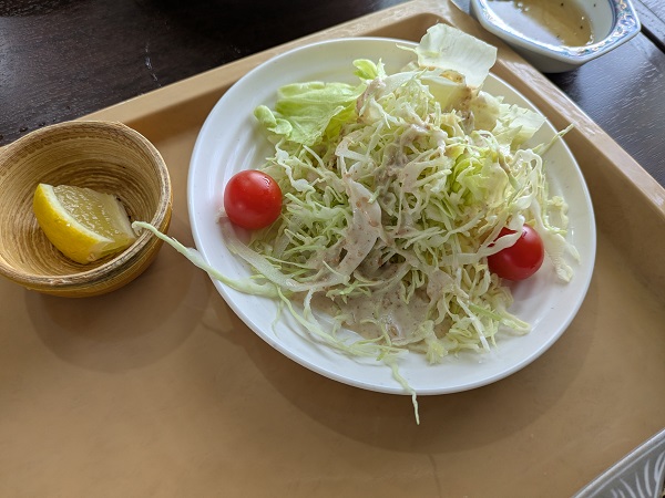 サラダはキャベツとレタスとミニトマト、ゴマドレッシングで。