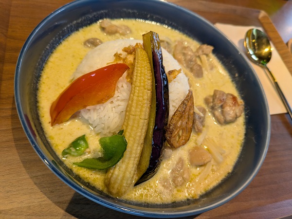 豆乳グリーンカレー、こちらはインディカ米、やはりグリーンカレーにインディカ米は合うな。