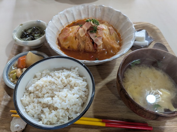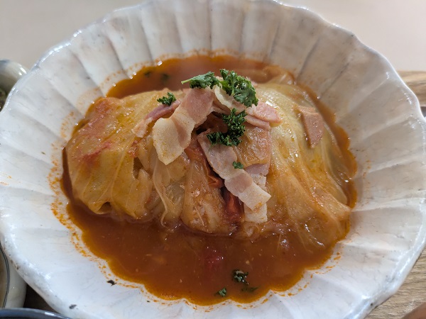 ロールキャベツはなかなかでかい、グズグズに煮込まれてて中の肉ダネの旨味も十分だしかなりジューシー、トマト風味もバッチリ美味い。
