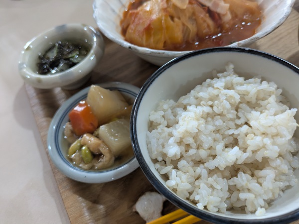 ご飯は五分づきでコレがまた相当美味い、玄米だと食べづらいし白米ほどさっぱりしすぎないいい塩梅だなと。