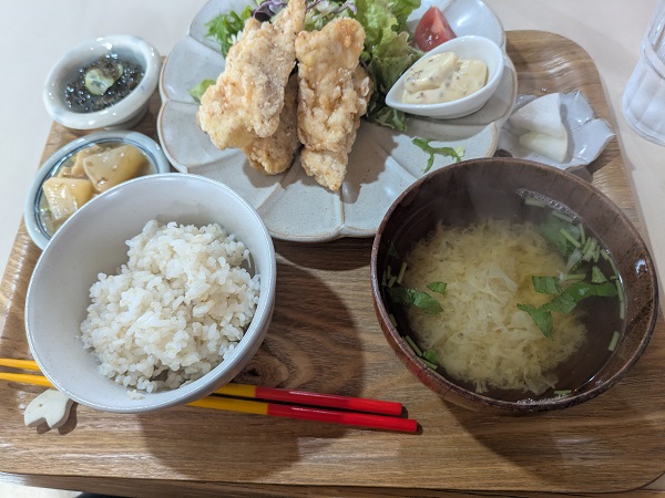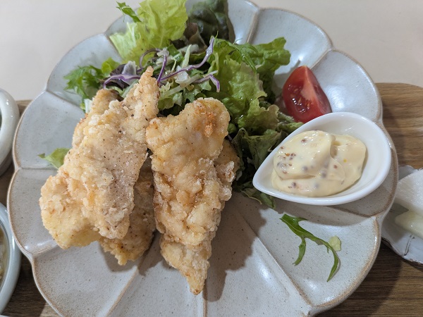 リネンさんは鶏むね肉からしマヨフリット定食、サクサクくらいのフリット、こちらもいい仕事…多分自家製なタルタルソースもいいね。