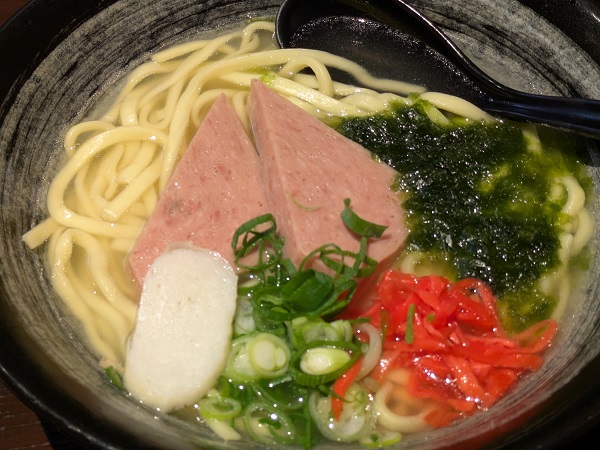 リネンさんはアーサスパムそば、アーサはあおさ、これがものすごくスープに合う、オレも追加したくなっちゃったくらい、スパムも安定な味。