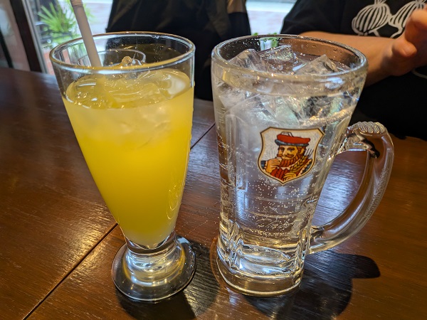 リネンさんはハイサイボール、瑞泉という泡盛のソーダ割りみたい、さわやかみたいね、オレはシークワーサーのジュースで乾杯。