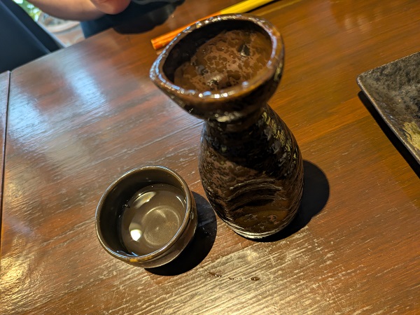 リネンさんは沖縄料理店なのに熱燗飲みたいって松竹梅てんのお燗に、ちょっとぬる燗だったみたいで熱々がよかった〜って。