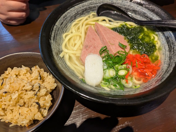 オレはソーキそば、ランチはジューシーがついてきます。