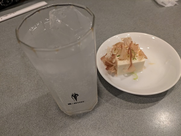 リネンさんはレモンハイ、お通しに奴がついてきます。